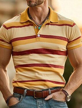 Homens Listrado Camisas Polo Manga Curta Camisas polo Camisas de colarinho Casual Roupa Esportiva Botões Malha Respirável Primavera Verão Azul Amarelo Roxo