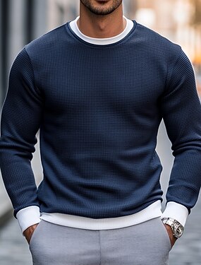 Homens Camiseta Waffle Moletom T-shirt Camisa de manga longa Manga Longa Gola Redonda Primavera & Outono Tecido Moda Designer Básico Moda duas peças falsas Férias Rua Casual Azul Marinha Marron