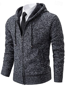 Homens Sueter Cardigan Suéter Cortado Suéter de malha Estriado Tricotar Padrão Botão para baixo Tecido Com Capuz Moda Clássico Roupa Diária Encontro Roupa Outono & inverno Cinzento M L XL