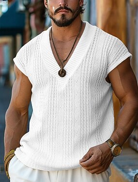 Homens Retalhos Vintage Malha Íntima Camisa Henley Sem Manga Vintage Moda Designer Ao ar livre Casual Diário Verão Primavera & Outono Azul Cinzento Verde cáqui Henley Camiseta Henley