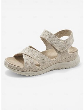 Sandálias femininas confortáveis com suporte para o arco do pé em formato de amêndoa – sandálias esportivas de malha respirável com sola acolchoada. &Alça de velcro ajustável para atividades ao ar