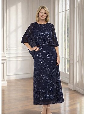 Linha A Vestidos Até o Tornozelo Vestido Coquetel Vestido de convidada de casamento Vestido Para Mãe dos Noivos Manga Curta Gola Redonda Elegante Casual Formal Convidado do casamento Kentucky Derby