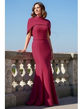 Duas Peças Sereia Longo Vestido de convidada de casamento Vestido formal Vestido de noite Vestido Para Mãe dos Noivos Sem Manga Gola Alta Sem Alças Elegante Vintage Convidado do casamento com Cor