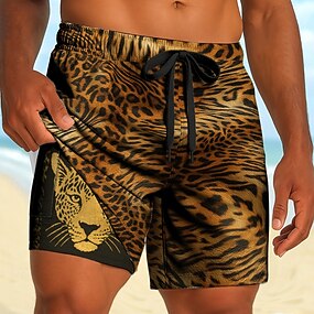 Homens Animal Estampa de Leopardo Shorts Forrados Shorts de Natação 2 em 1 Shorts de Natação Cintura Média Casual Férias Feriado Bolsos laterais Com forro de compressão Cintura elástica com cordão