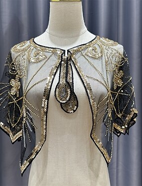 Envolvimento de Noiva Feminina Elegante Proteção Solar Manga Curta Renda Envoltórios de Casamento com Lantejoulas para Casamento de Verão