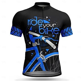 Masculino Camisa para Ciclismo Geométrica Moto Manga Curta Moto Camisa / Roupas Para Esporte Blusas com 3 bolsos traseiros Resistente a UV Secagem Rápida Com bolsos Zíper Frontal Esportes Azul Roupa