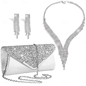 colar brincos roupas bolsa elegante &Liga de strass de poliéster brilhante luxuosa para cosplay, joias de fantasia femininas, joias da moda