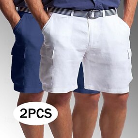 Homens Bermuda Cargo Shorts de linho Shorts de verão Shorts de praia Bolso multi Perna reta Multi-pack Tecido Conforto Respirável Comprimento do joelho Casual Diário Feriado Férias Moda Branco