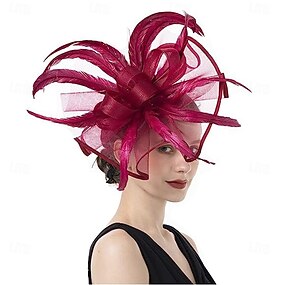 Fascinator Tecido Tule Chapéu Fedora Festa de Casamento Noite Chá Corrida de Cavalo Coquetel Vintage Fofo Com Adereço de Pena Acessórios de Cabeça