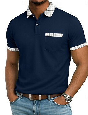 Homens Camisa de golfe Camisas Polos de Golfe Trabalho Casual Lapela Manga Curta Básico Moderno Bloco de cor Houndstooth Patchwork Primavera Verão Normal Preto Branco Vermelho Azul Marinho Azul Bege