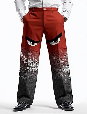 Natal Homens Floco de Neve Engraçado Rosto Impresso Calças Social Calças de Terno Cintura Média Engraçado Feriado Streetwear Calça social com corte relaxado e frente lisa com bolsos laterais