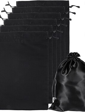 Conjunto de 10 sacos para perucas com cordão de cetim, sacos de seda preta para guardar várias perucas, extensões e apliques de cabelo.