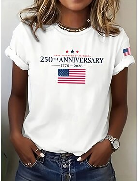 Dia da Independência Americana Mulheres Camiseta Imprimir Gráfico Letra Bandeira americana à moda Clássico Casual Manga Curta Decote V Tops regulares Casual Diário Preto Azul Marinha Verão Primavera