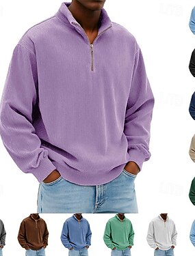 Homens Moletom Moletom com zíper Preto Azul Marinha Marron Cinzento Meio Zíper Bloco de cor Cavalo Patchwork Desportos e Ar livre Diário Feriado Poliéster Vintage Básico Casual Outono & inverno Roupa