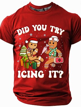 camisetas engraçadas de natal masculinas, camisetas 3d de natal, boneco de gengibre, estilo casual de rua, estampa 3d, camiseta esportiva ao ar livre, feriado, lago, azul, vermelho, verde, manga