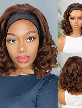 Perucas sintéticas Encaracolado Deep Curly Parte do meio Com Faixa de Cabelo Peruca 12 polegadas Castanho Escuro Cabelo Sintético 12 polegada Mulheres Macio Confortável Marrom Escuro