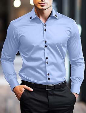 Homens Saia camisa de botão Bloco de cor Casamento Ao ar livre Preto Branco Azul Royal Azul Manga Longa Colarinho Verão Primavera Roupa