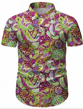 Retro Vintage Anos 70 Camisa Camisa Aloha Hippie Discoteca Estampado Cashemere Étnico Fantasia Homens Baile de Máscaras Férias Festa Parada do Orgulho Adulto Camisa