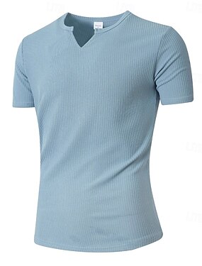 Homens Camiseta Camiseta de malha canelada Manga Curta Gola Redonda Decote V Verão Tecido Pit Strip Moda Designer Esportivo Corte Justo Estriado Casual Férias Rua Preto Branco Azul Claro Top Tee para