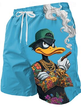 Homens Engraçado Pato animais de desenho animado Calção Justo de Natação Fatos de banho Calções de banho Bermuda de Surf Cintura Média Havaiana Hippie férias na praia Bolsos laterais Forro de malha