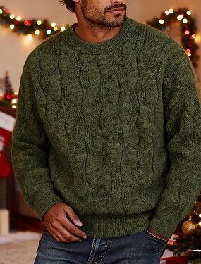 Homens Pulôver suéter Suéter de malha Estriado Tricotar Tops regulares Tricotado Tecido Gola Redonda Moda Básico Férias Roupa Diária Roupa Outono Inverno Vermelho Verde M L XL