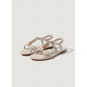 Sandálias rasteiras femininas estilo boho chic com detalhes em contas metálicas – calçado confortável para ocasiões casuais, casamentos na praia, eventos de verão e férias.
