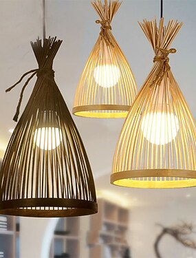 LED pendente de 40/50/60 cm de design único madeira clara / bambu estilo vintage pintado com acabamentos country vintage 220-240v