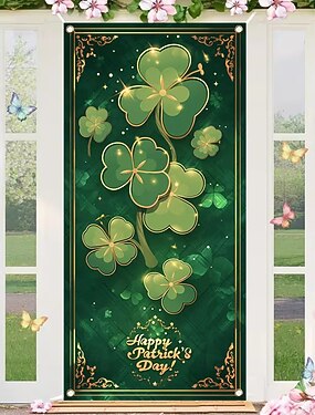 Dia de São Patrício Pôsteres Tampa da porta Banners externos Trevo Estilo bonito 3D De Festa Dorm Sala de Adolescentes Dormitório da faculdade Quarto de fraternidade da caverna masculina Fundos de
