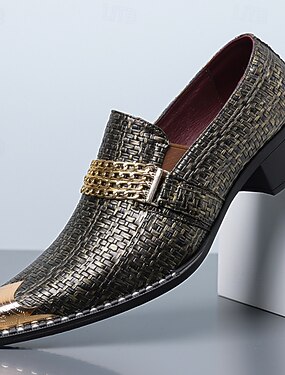 Mocassins masculinos texturizados em couro sintético dourado – sapatos sociais elegantes, perfeitos para festas, eventos noturnos e ocasiões casuais sofisticadas.