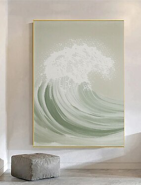Pintura a óleo artesanal com textura de ondas do oceano, arte de parede abstrata verde, pintura a óleo sobre tela moderna com textura branca, arte de parede costeira em 3D com paisagem marinha.