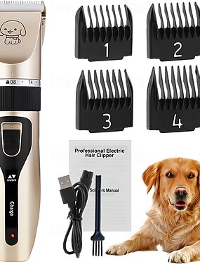 Máquina de tosa para cães - tesoura elétrica recarregável e silenciosa para tosar gatos e outros animais de estimação, com 4 pentes guia.