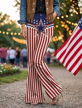 250º Aniversário EUA Retro Vintage Anos 70 Calças Calça boca de sino Hippie Discoteca Cintura Alta Fantasia Mulheres Baile de Máscaras 4 de julho Festa Dia da Independência Adulto Calças