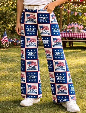 250º Aniversário EUA Retro Vintage Anos 70 Calças Calças de pernas largas Hippie Discoteca Cintura Alta Fantasia Mulheres Baile de Máscaras 4 de julho Dia da Independência Adulto Calças
