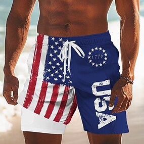 Dia da Independência Homens 4 de julho - 250º aniversário dos EUA Bandeira dos EUA Patriótico Calção Justo de Natação Shorts de Natação Bermuda de Surf Cintura Média Havaiana Feriado Bolsos laterais