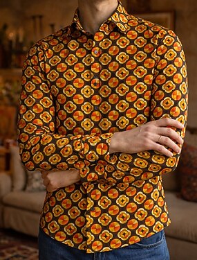 Retro Vintage Anos 70 Camisa Camisa Aloha Manga Comprida Hippie Étnico Fantasia Homens Baile de Máscaras Festival de Música Festa Roupa Diária Adulto Camisa