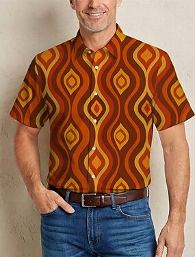 Retro Vintage Hippie Anos 70 Camisa Mangas curtas Hippie Estampado Cashemere Boêmio Étnico Fantasia Homens Festival de Música Festa Roupa Diária Adulto Camisa Primavera Verão
