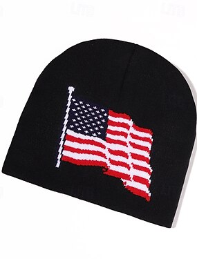 Homens Unisexo Gorro Chapéus de inverno Gorros Chapéu de malha Gorro de inverno Preto Branco Fibras Acrilicas Tricotado Aconchegante Roupa Diária Para Noite American US Flag Quente