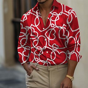 Homens Romântico Presente Forma de Coração Camisa Social Blusa de cetim Saia Manga Longa Moda Casual Férias Feriado Verão Primavera Outono Aberto para a Lateral Impressão 3D Camisas de botões