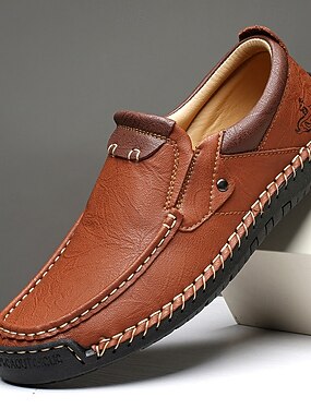 Sapatos casuais masculinos marrons, modelo slip-on, costurados à mão, confortáveis, leves e elegantes para uso diário, viagens, direção, escritório, lazer ao ar livre e estilo casual descontraído.