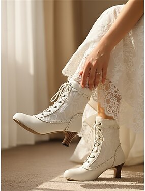 Botas de noiva femininas com cadarço, de inspiração vintage – elegantes sapatos de casamento em renda branca e couro sintético para casamentos na cidade.