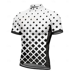 Homens Camisa para Ciclismo Gráfico Geométrica Gradiente Manga Curta Moto Camiseta Blusas com 3 bolsos traseiros Resistente a UV Secagem Rápida Zíper Frontal Tiras Refletoras Esportes Preto Azul