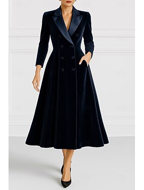 Mulheres Vestido smoking Linha A Formal Veludo Elegante Simples Manga Longa Longuette Lapela Trespassado