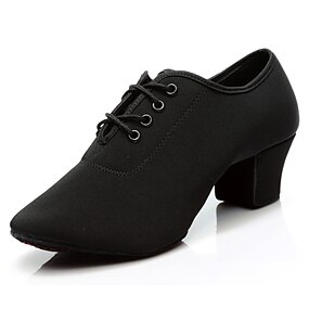 Homens Sapatos de Dança Latina Praticar tênis de dança para treinar Espetáculo Festa Interior Com Laço Meia Solas Palmilha mais macia Salto Grosso Com Cadarço Preto