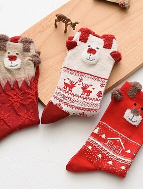 Mulheres Meias Equipe Meias grossas de inverno Natal Ao ar livre Diário Animal Poliéster Lã Básico Clássico Casual Manter Quente 1 par