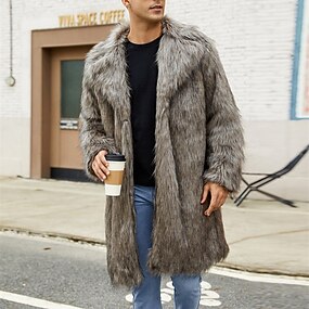 Homens Jaqueta de Inverno Casaco de lã Casaco de pele falsa Diário Férias Térmico / Quente Bolsos Tosão Outono & inverno Estampa de Leopardo Moda Roupa de rua Lapela Longo Branco Marron Cinzento Claro