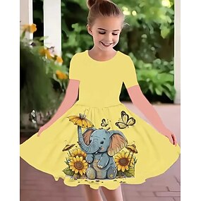 Mulheres Minivestido Vestidos Para o Verão Vestido T shirt Vestido A Line Vestido de verão Férias Casual Diário Normal Floral Gráfico Manga Curta Decote V Azul Amarelo Escuro Amarelo Verde Claro