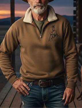 Homens Gráfico Cowboy camisolas Moletom Zip Casaco de lã Casacos Manga Longa Moletom Colarinho Chinês Diário Casual Vintage retrô Férias Feriado Para Noite Tosão Inverno