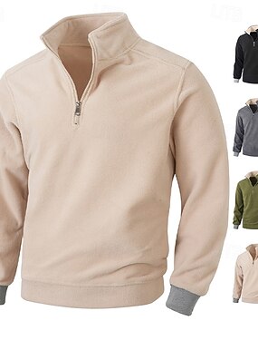 Homens Moletom Fleece Moletom com zíper Preto Verde Tropa Azul Marinha Cáqui Meio Zíper Tecido Bolsos Desportos e Ar livre Diário Feriado Roupa de rua Legal Casual Primavera & Outono Roupa Moletons
