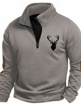 Homens Veado Waffle Moletom Casual Vintage retrô Caça Colarinho Chinês Ao ar livre Casa Presente Preto Marron Verde Tropa Cinzento Zip Up Outono Inverno Designer S M L XL XXL XXXL