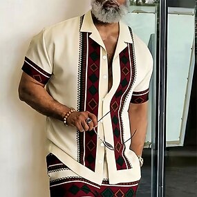 Homens Camisa Social Textura camisa de botão Camisa Jacquard Preto Branco Verde Claro Azul Marinha Roxo Manga Curta Geométrica Lapela Diário Ao ar livre Jacquard Roupa Roupa de rua Casual